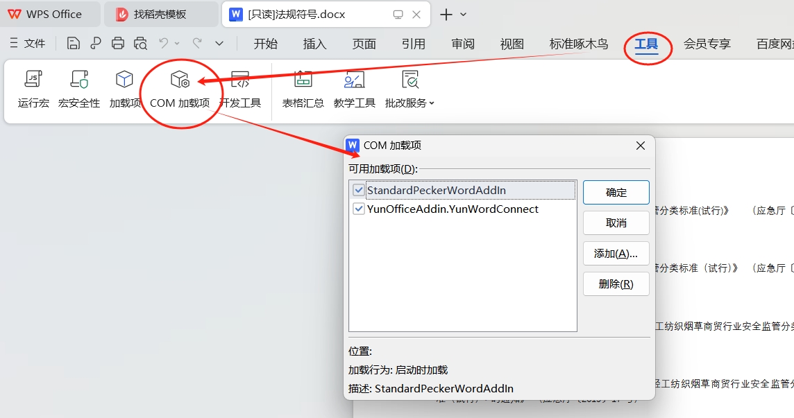 看看列表里有没有 “StandardPeckerWordAddIn” 插件: